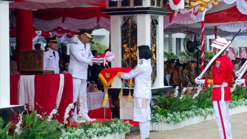 BUNTOK (MediaSurya) – Bupati Barito Selatan (Barsel), Kalimantan Tengah (Kalteng), Eddy Raya Samsuri memimpin upacara peringatan Hari Ulang Tahun (HUT) ke-80 Republik Indonesia, di Halaman Kantor Bupati setempat, Minggu (17/8).