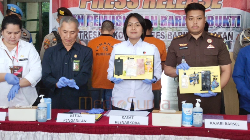 BUNTOK (MediaSurya) – Kepolisian Resor (Polres) Barito Selatan (Barsel), Kalimantan Tengah (Kalteng) memusnahkan barang bukti narkotika jenis sabu seberat 57,35 gram hasil pengungkapan kasus dari tiga tersangka periode Juni hingga Agustus 2025.