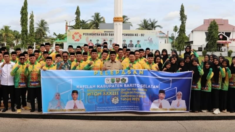 Pelepasan kafilah digelar di Lobi Utama Kantor Bupati Barsel yang menandai keberangkatan peserta menuju ajang provinsi yang berlangsung 14 hingga 22 November 2025, Jumat (14/11).